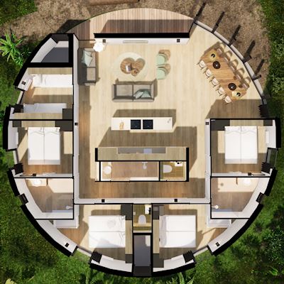 - Vijf slaapkamers met twee 1-persoons boxsprings