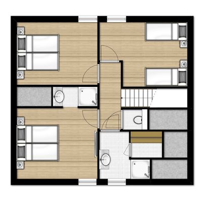• Trois chambres à coucher avec deux lits pour 1 personne au premier étage
