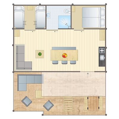 - Peut accueillir six adultes et deux enfants