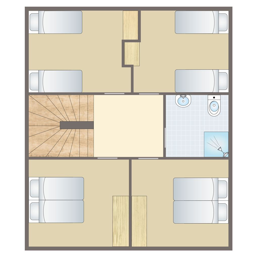 - Twee slaapkamers met twee 1-persoonsbedden op de eerste verdieping