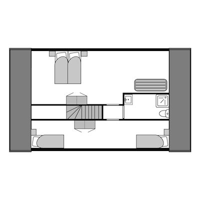- Drie slaapkamers met twee 1-persoons boxsprings