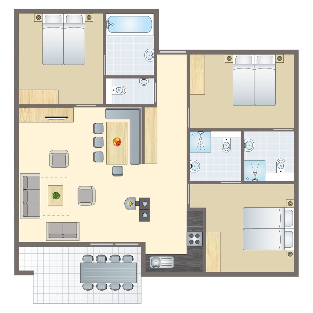- Drie slaapkamers