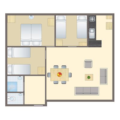 - Twee slaapkamers met twee 1-persoons boxsprings