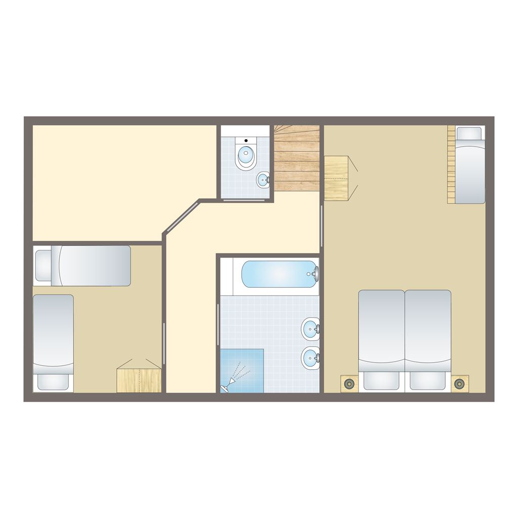 • Aangepaste slaapkamer met twee hoog-/laagbedden, softtopper en draaicirkel minimaal 120 cm