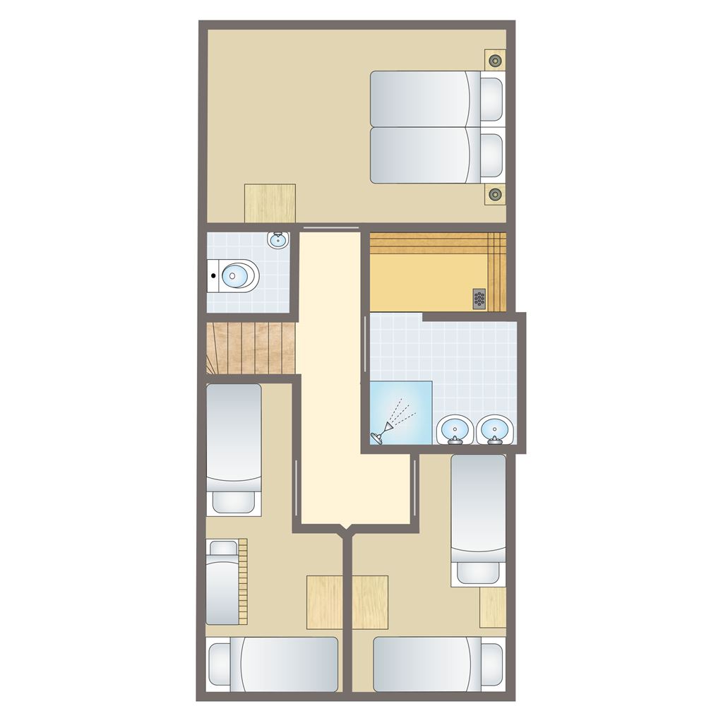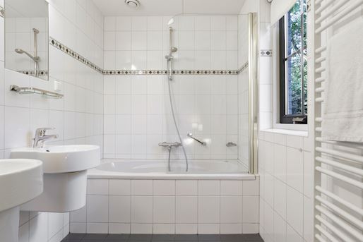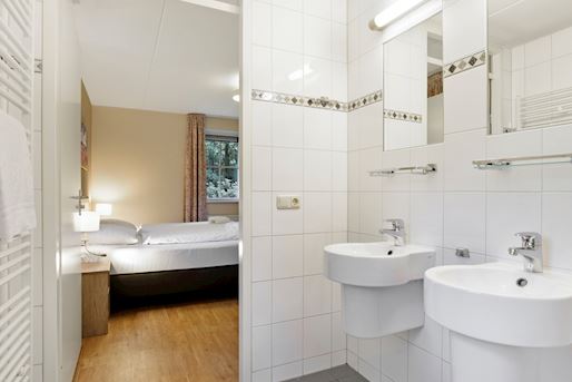 • Badkamer met douchecabine en dubbele wastafel op de eerste verdieping