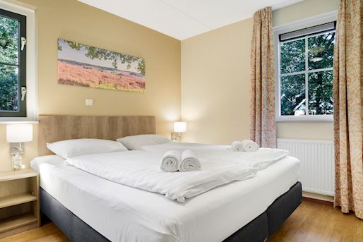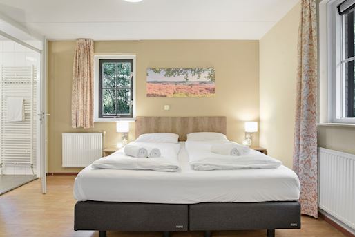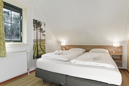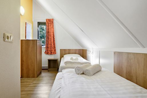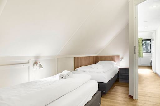 • Slaapkamer met twee 1-persoons Auping boxsprings, 2-persoonssofttopper en flatscreen-tv