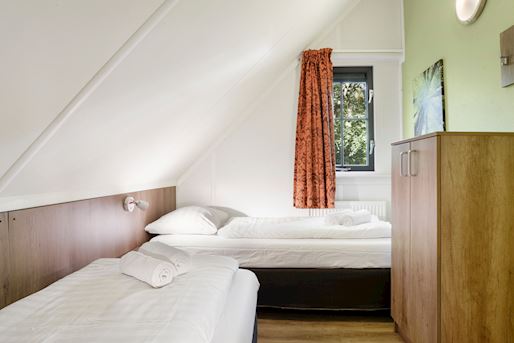 • Drie slaapkamers met twee 1-persoons Auping boxsprings op de eerste verdieping