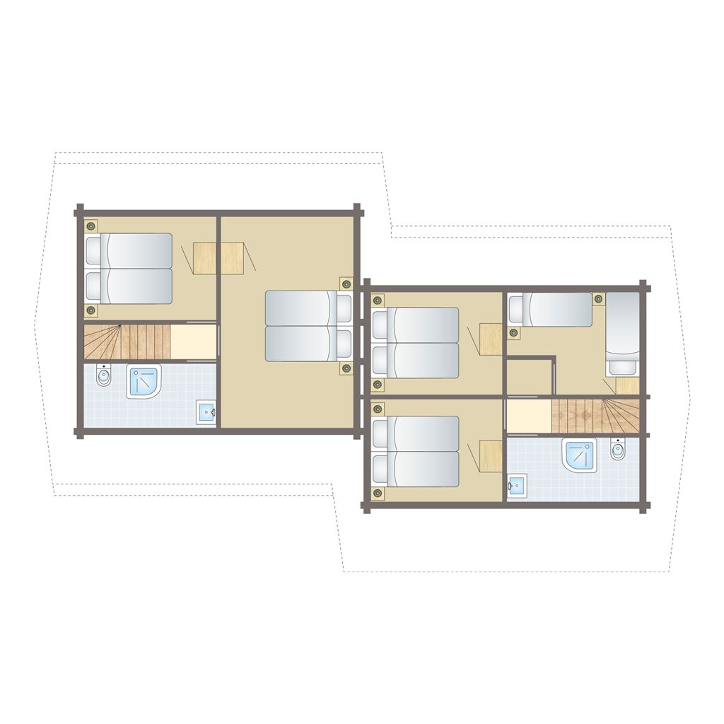 - Vijf slaapkamers met twee 1-persoons boxsprings op de eerste verdieping