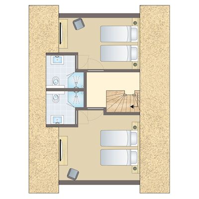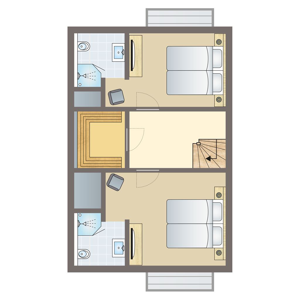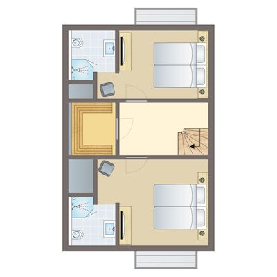• Two bathrooms en suite with walk-in shower, sink and toilet located on the first floor
