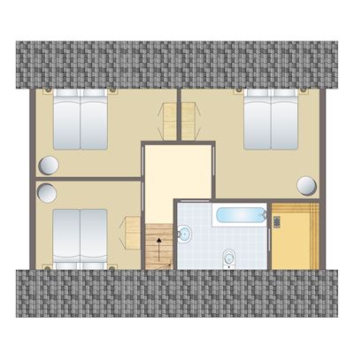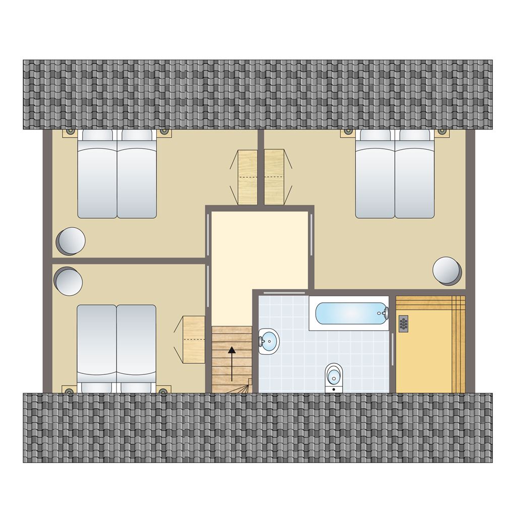 - Drie slaapkamers met twee 1-persoons boxsprings op de eerste verdieping