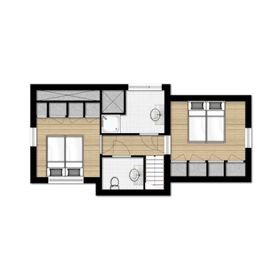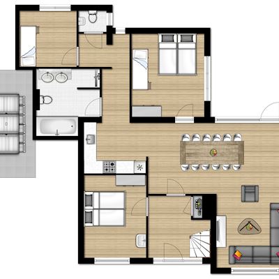 - Drie slaapkamers met twee 1-persoons boxsprings