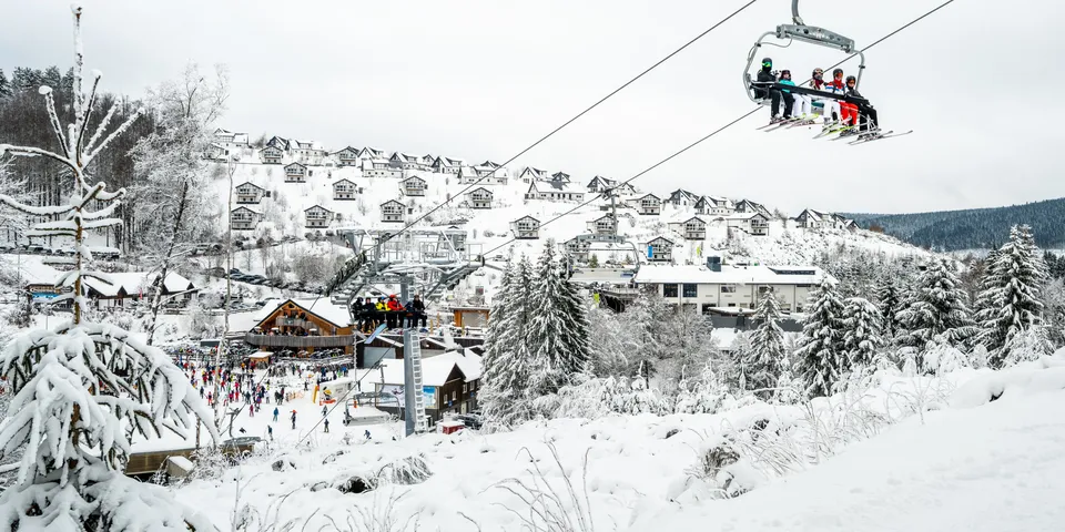 Vanuit de woonkamer van jouw bungalow heb je een adembenemend uitzicht op de skipiste. Ook in Landal Winterberg loop je zo de skipiste op om snel op de latten door de poeder te sjezen.