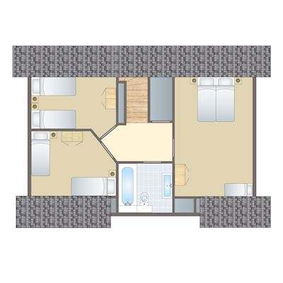 • Twee slaapkamers met twee 1-persoons boxsprings op de eerste verdieping